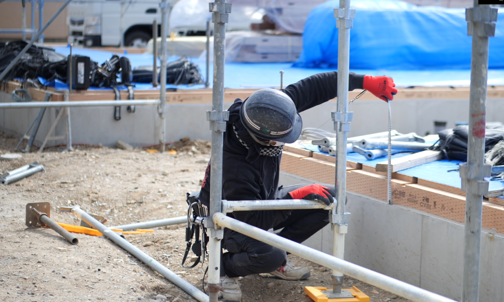 足場工事は、建設現場で高所作業を行う際にすべての職人や作業員の人たちの安全と作業の品質を、足元からしっかり支える重要で大きなやりがいを感じることができる工事です。